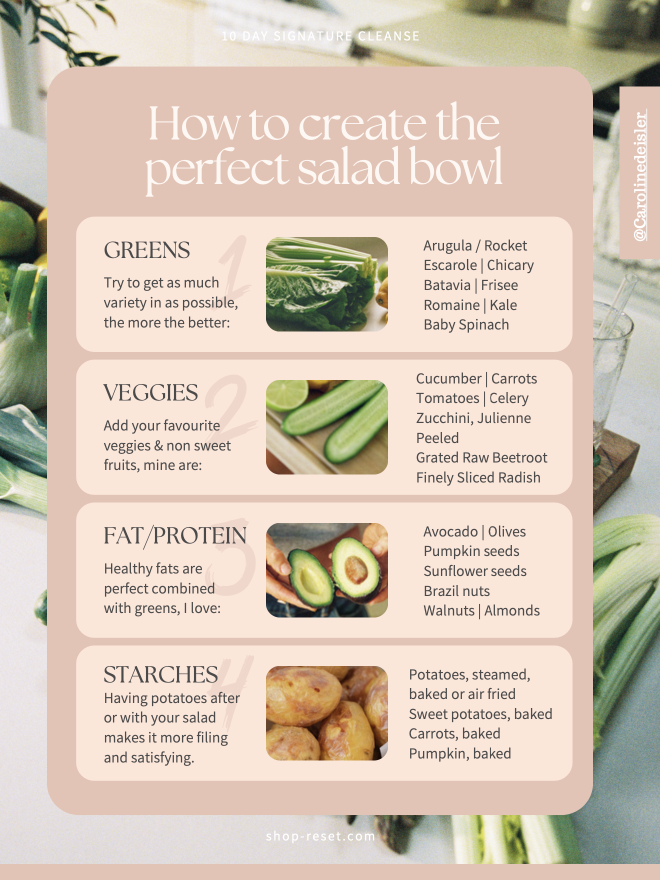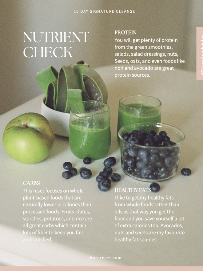 My 10-Day Signature Reset has 3 recipes for each day, 30 healthy vegan recipes in total. All following my personal lifestyle beliefs which means vegan, no refined sugar & no gluten.