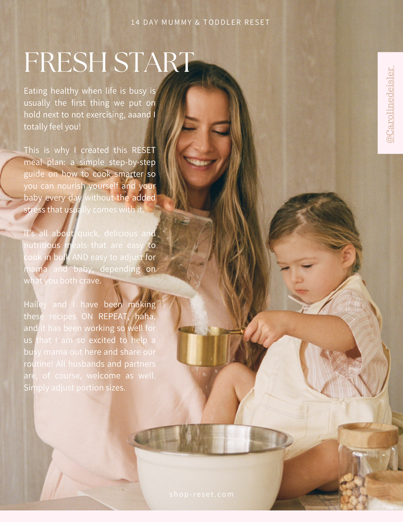 This is why I created this RESET meal plan: a simple step-by-step guide on how to cook smarter so you can nourish yourself and your baby every day without the added stress that usually comes with it.