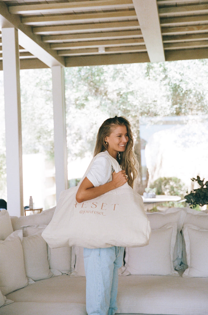 This bag is a dreeeeam! Made from organic canvas just like our tote bag but the size is massive hehe and the quality is just a 10/10!! PERFECT for weekend trips and travelling in general or every day use if you‘re a busy mom like myself and always have a million things to carry haha.